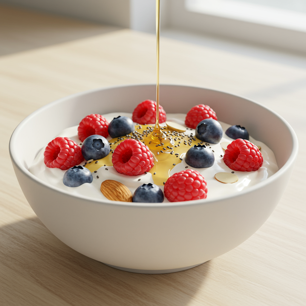 - 여기에 꿀(소량), 치아씨, 견과류 등을 추가하면 더욱 영양가 높은 아침 식단이 완성됩니다.