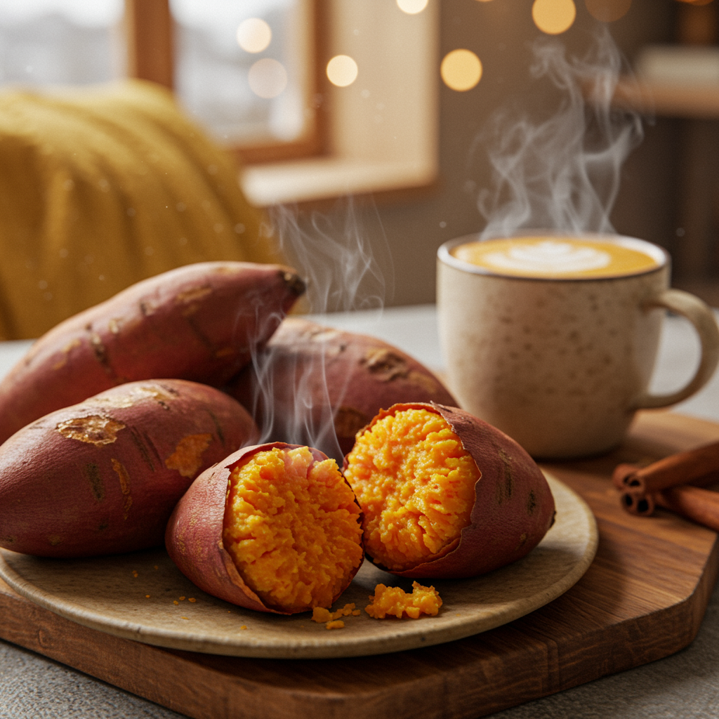 겨울 간식의 대명사, 고구마! 따뜻한 군고구마 하나면 추위도 잊게 되죠. 고구마는 맛도 좋지만, 우리 몸을 따뜻하게 하고 에너지를 공급해주는 훌륭한 겨울 음식이랍니다.