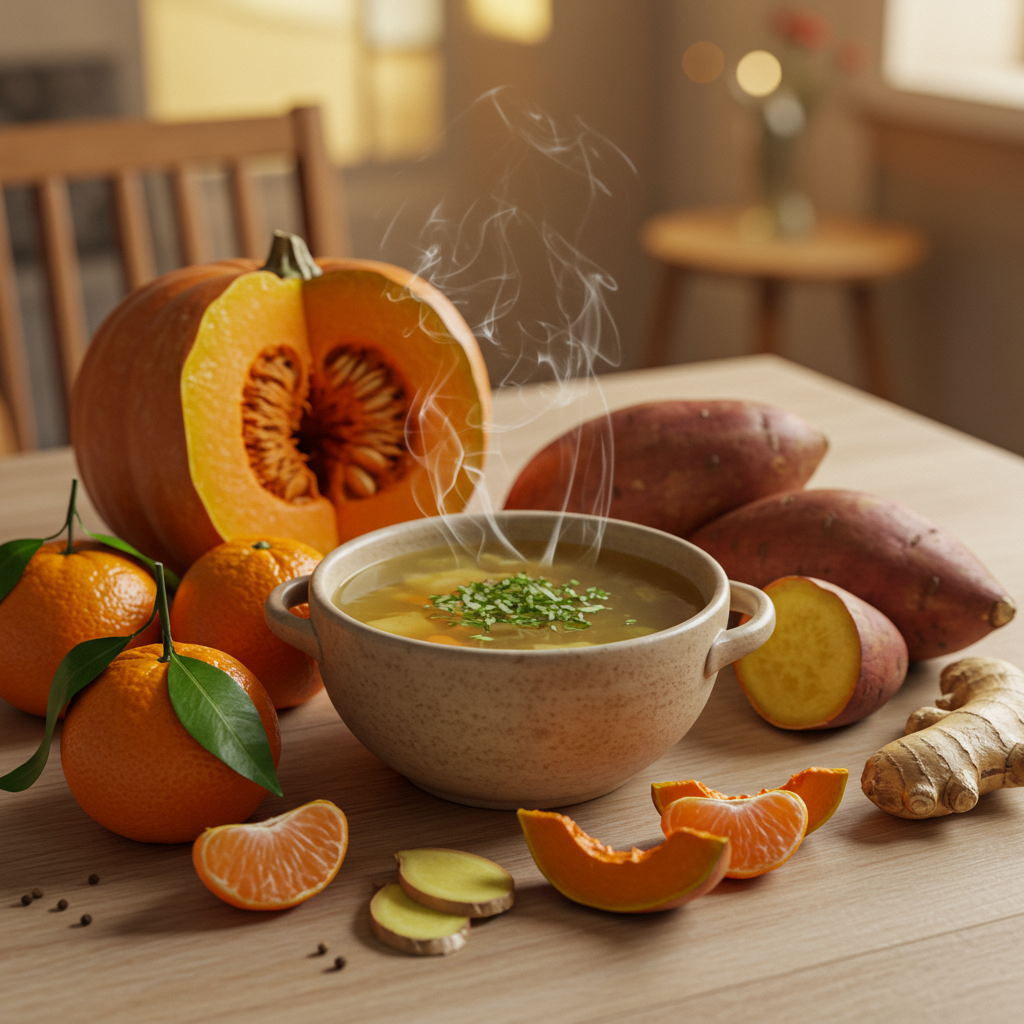 단호박에는 강력한 항산화 성분인 베타카로틴이 풍부하게 들어있어요. 이 베타카로틴은 체내에서 비타민A로 전환되어 시력 보호는 물론, 체내 산소 공급을 원활하게 하고 혈액순환을 촉진하는 데 기여한답니다. 혈액순환이 잘 되면 자연스럽게 체온이 올라가고, 몸속 냉기가 줄어들어 겨울철 건강 관리에 큰 도움이 되죠. (출처: 헬스조선, Daum 건강한 하루)