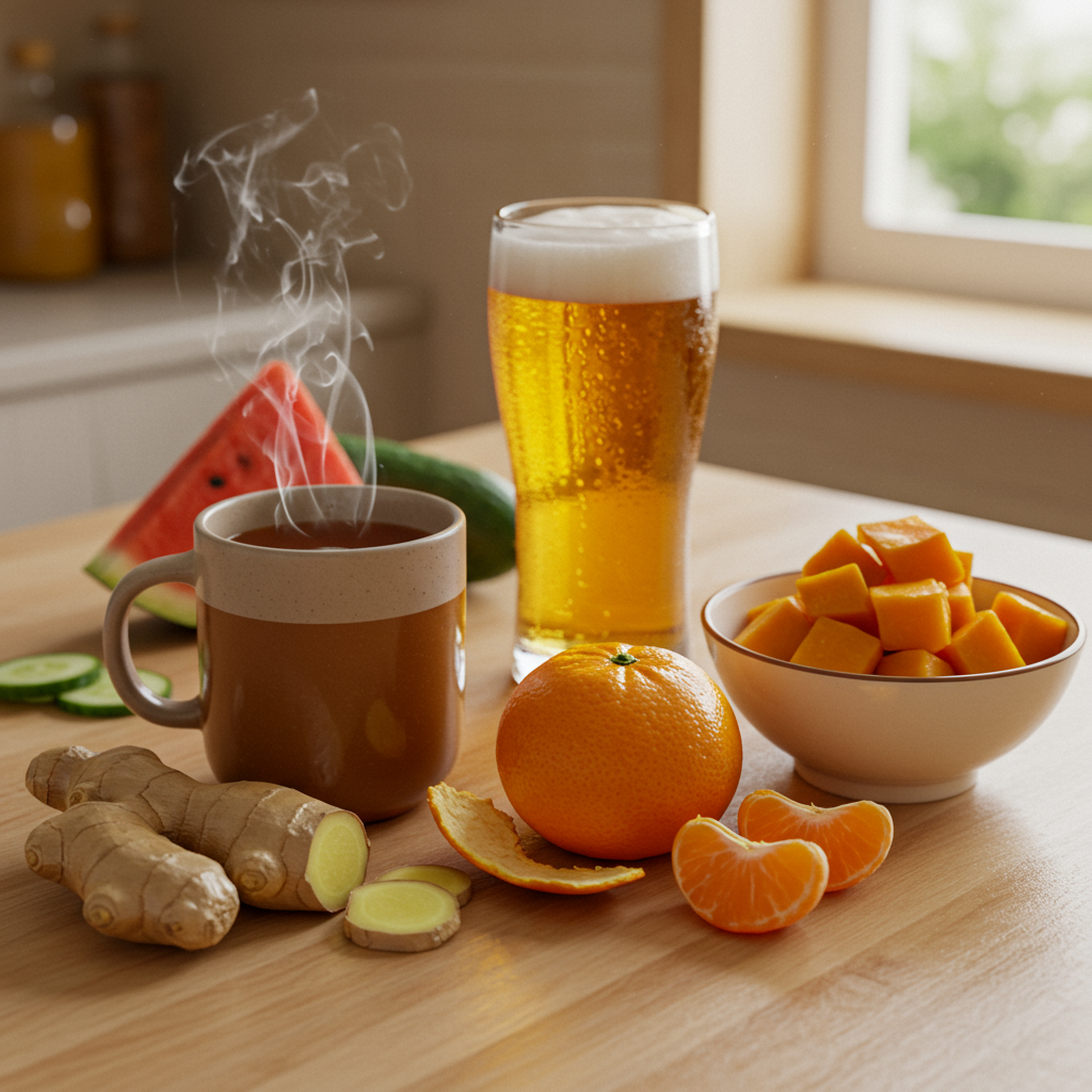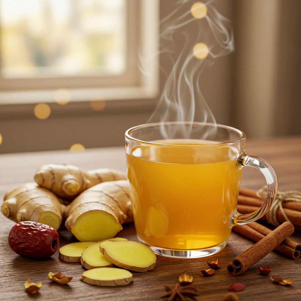- 재료: 생강 50g (엄지손가락 2마디 정도), 물 1L, 꿀 또는 설탕 (기호에 따라)